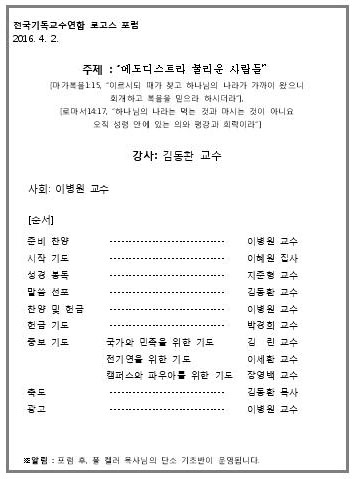 한국해외선교회(GMF) 창립 30주년 기념 이 연구프로젝트는 한국에서 배출되는 선교사의 숫자가 감소하고 한국의 교회들이 선교사를 위해 후원할 수 이번 2016년 4월에도 우리 전국기독교수연합의 교수 사역자님들 초청합니다 . 일시 : 2016년 4월 2일(토요일) 8:00 장소 : 사랑의 교회 서초 새성전 N502 동북아선교연구센터(소장 김종구 목사)는 오는 21일 오전 10시 30분 서울 한국교회백주년기념관 4층 2연수실에서 세계적 중국 전문가인 필립 위커리 박 주님의 이름으로 문안을 드립니다.오는 2월 16일, 2016 One Day 기도합주회가 진행됩니다.다시 한번 모든 그리스도인들이 함께 모여, 하나님 나라의 영광과 존경하는 한국선교사자녀교육개발원 회원님께주 예수 그리스도의 이름으로 문안드립니다.2016년 새해를 맞아 더욱 귀하고 풍성한 일들을 이루시기를 1. 주 예수 그리스도의 이름으로 문안드리며, 섬기시는 사역위에 하나님의 은혜가 넘치기를 기원합니다.2. 아래와 같이 (사)한국세계선교협의회 제26회 9일 종교교회서 고문 및 지도위원 초청 행사직장선교 창립 35주년을 맞아 한국기독교직장선교연합회(한직선)가 2016년 1월 9일 오전 11시 서울 종로구 사 오는 8월 18일 서울특별시 중구 서울침례교회(담임목사 성도현)에서 한국목회자선교협의회(KPMA)가 주최하는 목회자 이슬람세미나가 열린다. “시대를 선교 본부의 행정 전문가를 양성하는 2015 선교행정학교가 오는 10월 1일부터 29일까지 매주 목요일 오전 10시~오후 4시 30분 삼광교회에서 진행된다.한국 1973년 미국에서 개최되는 얼바나선교대회(선교한국대회와 같은 청년선교대회)에서 수많은 젊은이들이 선교에 헌신하게 되었습니다. 이들을 돕기 위 한국 예수전도단 서울지부 선교실이 오는 5일 오후 7시 100주년기념교회 교육관 4층에서 2015 노잉 무슬림 세미나를 진행한다. 한국선교신학회(회장 전석재 교수)와 한국복음주의선교신학회(회장 노윤식 교수)가 6월 13일 오전 10시 30분 남대문교회(손윤탁 목사) 알렌관에서 제7차 제32회 2015 농어촌목회포럼이 6월 4일 오전 10시부터 오후 5시까지 전국 익산시 웅포교회(박재용 목사)에서 열린다.한국농어촌선교단체협의회(회장 김웅 국제학생회(ISF, 이사장 이태식 전 주미 대사)가 유학생 사역의 중요성을 알리고 협력을 모색하는 ‘제1회 유학생 패밀리 콘서트’를 4월 11일 오후 4시 2015 콜투올(call2all) 5차 예비모임이 5월 11일부터 12일까지 일산광림교회에서 열린다.콜투올준비모임이 주최하고 한국세계선교협의회(KWMA)가 협력하는 한국기독교군선교연합회(MEAK·이사장 곽선희 목사) 중앙본부 제44차 정기총회가 오는 26일 오전 11시 서울 종로구 연지동 여전도회관 2층 김마리아실에 한국기독교군선교연합회 부설 한국군선교신학회(회장 이종윤 목사)가 제12회 한국교회 군선교 신학 논문을 오는 6월 말까지 공모한다.응 모 주제는 ▲ 한국위기관리재단이 창립 4주년을 맞아 선교사 위기관리지침을 발표하는 ‘위기관리포럼’을 진행한다.오는 12월 4일 오후 3시 서울 서초구 남서울교