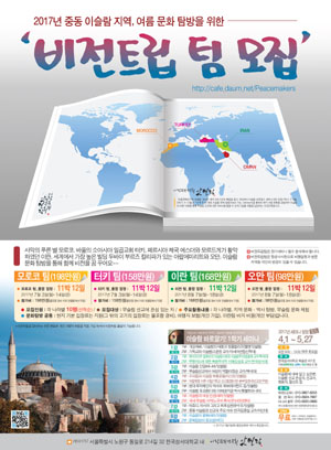 “500년 전 종교개혁은 종교의 속박으로부터 인류를 해방시켰을 뿐 아니라, 인류 사회 전반에 영향을 미친 운동이었습니다. 한국교회 역시 종교개혁의 한국기독교직장선교연합회(한직선)가 침체를 보이는 한국 직장선교의 전반적인 분위기를 쇄신하고, 직장선교의 재도약을 위해 전략과 개념, 방향을 “혹시 천국 체험하지 않으셨어요?” “지옥 같은 체험을 했는 걸요!”저는 작년 12월 중순에서 올해 1월 중순까지, 한 달 동안을 병원에서 보냈는데 3 3가정, 6명의 선교사 후보생은 저마다 선교사로 지원한 과정과 배경이 달랐지만 공통점이 있었다. 구원의 감격과 하나님이 부어주신 선교에 대한 거룩 3가정, 6명의 선교사 후보생은 저마다 선교사로 지원한 과정과 배경이 달랐지만 공통점이 있었다. 구원의 감격과 하나님이 부어주신 선교에 대한 거룩 이슬람선교전문단체인 FIM국제선교회(이사장 천환, 대표 유해석)와 아세아연합신학대학교(ACTS) 선교대학원(원장 정흥호)이 선교연구와 훈련 및 실행을 교회는 선교의 모판이다. 그런데 선교의 모판인 교회가 위기라고 한다. 2015년 인구주택총조사에서 기독교인은 10년 전보다 123만여 명이 늘어난 967만 6 한국기독교재정투명성위원회(대표 황호찬)가 기독교 단체 중 건강한 재정 시스템 1호 모델로 사단법인 한국 순교자의 소리를 꼽았다.한국기독교재정 한국교단 선교부가 한국교회와 선교의 성숙과 발전을 위한 역할을 모색했다. 최근 경기도 수원 예장합신세계선교회에서 열린 2017년 1차 한국교단선교 “앞으로 10년이 한국교회와 군선교의 골든 타임입니다. 이제는 군선교에 힘을 기울여야 한국교회의 미래가 밝습니다.”군복음화의 핵심 전략인 대대 한국교회연합(한교연) 이슬람대책위원회와 한국장로교총연합회(한장총) 이슬람대책위원회가 최근 연동교회 1층 드보라의 방에서 12주 과정의 봄학기 샬롬! 아직은 찬바람이 불지만 이미 봄이 다가옴을 느끼는 한국땅에서 늘푸른 가족의 삶과 사역을 동역자분들께 나눕니다. 지난겨울이 무척이나 길게 미얀마장로교신학교 학장이자 인도차이나연구소 소장 전호진 박사는 박근혜 전 대통령이 탄핵으로 물러난 이후 현 시국을 우려하며, 영적인 한미동맹 “당신이 나와 같은 상황에 처한다면 어떻게 하시겠습니까?”IS의 투옥, 폭력, 협박, 약탈, 개종 강요로 고통당하다 심지어 십자가에 침을 뱉는 신성모 이슬람 바로 알기 세미나와 이슬람 현지 문화 탐방을 통해 중동 무슬림 선교에 대한 비전을 제시하는 ‘아랍문화연구회 앗쌀람’이 올해도 세미나와 홈페이지 통해 사전 온라인 접수, 학기별 등록금 5만 원최근 전 세계에서 기독교에 대한 박해가 증가하고 그 강도도 점차 강해지고 있다. 인도를 비롯 헌법재판소가 10일 박근혜 대통령의 파면을 결정했다. 기독교계 원로 등 지도자들은 이번 결정에 대해 "한국 법치주의의 승리"라며 "법 앞에 모두가 승 역기능적인 행동을 보이는 청소년들이나 흔히 문제아라고 말하는 집단이나 개인을 ‘병적인 심리상태’에 있다고 보면 끝없이 병적이다. 그러나 조금 세계적인 선교전략가이자 선교동원가인 루이스 부시(Luis Bush) 박사는 18명에 이르는 손주에게 어떻게 신앙 훈련을 하고 있을까.8년 전 ‘4/14윈도우운동